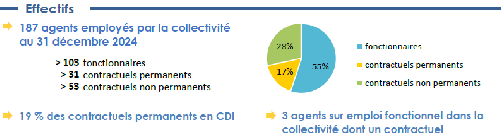 Pour assurer le service public, sur l’ensemble du territoire nous pouvons compter sur 187 agents impliqués. Devant la montée en technicité, nos agents ont acquis des compétences supplémentaires grâce à un programme de formation mais aussi au recrutement de cadres. Nous sommes particulièrement vigilants sur les effectifs qui ont tendance à baisser.